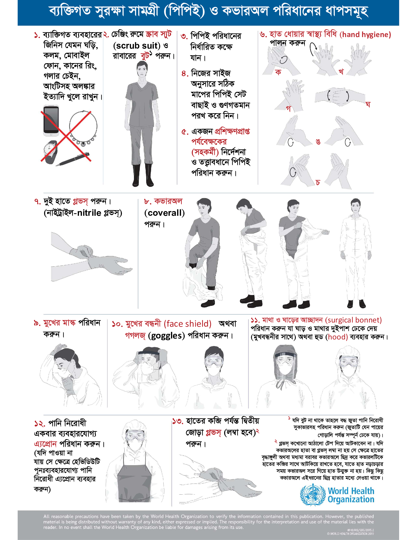 3. Steps to put on PPE and coverall (Bangla)