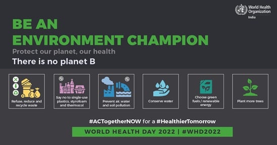 On World Health Day 2022, WHO will focus global attention on urgent actions needed to keep humans and the planet healthy and foster a movement to create societies focused on well-being.