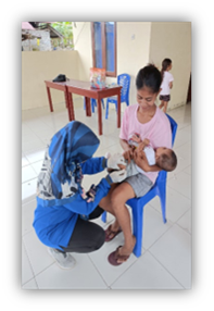 “It’s hard to conduct house-to-house/catch-up immunization to reach unimmunized children because many parents in our area frequently go to the forest frequently, often taking their children along with them. This makes it difficult to find them at home for vaccination. To ensure complete immunization of children, we educate parents about the effectiveness of timely immunization and the safety of multiple injections. Some parents worry about the side effects of administering more than one injection to their children at one visit,” said Hairia, the Immunization officer of Puskesmas Baru. This is a common issue that has been raised by immunization officers based on their experience. The immunization officer needs to share their knowledge and encourage parents to consider multiple injections and complete basic immunization for their children.